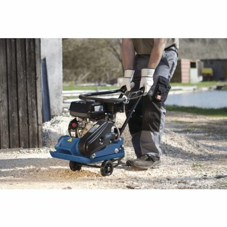 “Trade Ratednn‚Ä¢ Plate size: 530 x 350 mmn‚Ä¢ Compaction force: 11000 Nn‚Ä¢ Faster travel speed ‚Äì for improved productivityn‚Ä¢ Includes foldaway wheels for easy one-man transportationn‚Ä¢ Includes transparent rubber pad for block paving workn‚Ä¢ Powered forward movement ‚Äì light enough to allow user to manually reversenn “