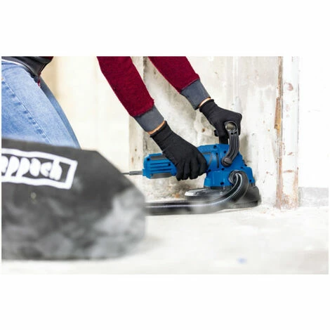Presentation: This SCHEPPACH DS200 drywall sander will make you forget the time when you were sanding by hand. Multi-surface product, thanks to it you will be able to sand your ceilings, your walls and your floors. Its power of 1050 W coupled with a variable speed control between 410 to 1900 rpm, you will be able to sand drywall as well as glue residues or plaster on a wall. This tool is designed to make sanding easier, more pleasant and safer thanks to the presence of a soft grip and adjustable handle. The slogan “GOOD WORKING” reflects SCHEPPACH’s desire to sell good products with modern equipment and practical functions that achieve the best results. Advantages: Powerful 1050 W motor Multi-surface product: suitable for walls, floors and ceilings Variable speed to suit the materials you are sanding Carbide wheel for rough work Combination of safety and comfort: adjustable handle and ergonomic “Softgrip” surface An integrated 25 L dust bag collects the dust Supplied with 1 x 1.5 m suction hose, set of 6 sanding discs, carbide grinding wheel, dust bag with extendable suction hose, suction adapter Features: Power: 1050 W Motor: 230 V / 50 Hz Sanding disc diameter: 180 mm Sanding paper diameter: 180 mm Speed : 410 – 1900 min-1 Suction mouth diameter : 40 mm Dimensions (L x W x H) : 370 x 210 x 170 mm Weight net / gross : 4 / 5 kg Ref. 5903818901 Packaging: 1 x Sander6 x Sanding discs1 x Collecting bag1 x Hose1 x Carbide plate wheel1 x Suction adapterDelivered in original packaging Warranty: 5 years (+ 5 year extension after product registration, valid only in France)